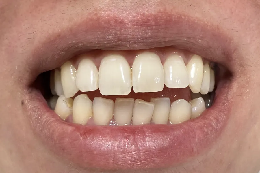 施術前後は、シェードガイド(歯の色見本)を使って白さを客観的に確認します。自分では分かりづらい微細なトーンの変化も可視化でき、目標とする「理想の白さ」を明確にしながら施術を進めます。施術を重ねるごとに、確実にシェードが明るくなっていくのを実感いただけます。